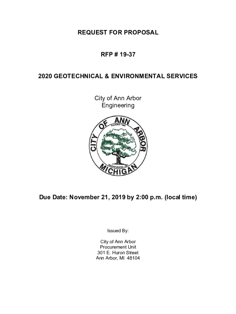 REQUEST FOR PROPOSAL RFP # 1937 2020 GEOTECHNICAL & ENVIRONMENTAL SERVICES City of Ann Arbor Engineering Date: November 21, 2019, by 2:00 p.m. (local time)Issued By: City of Ann Arbor Procurement