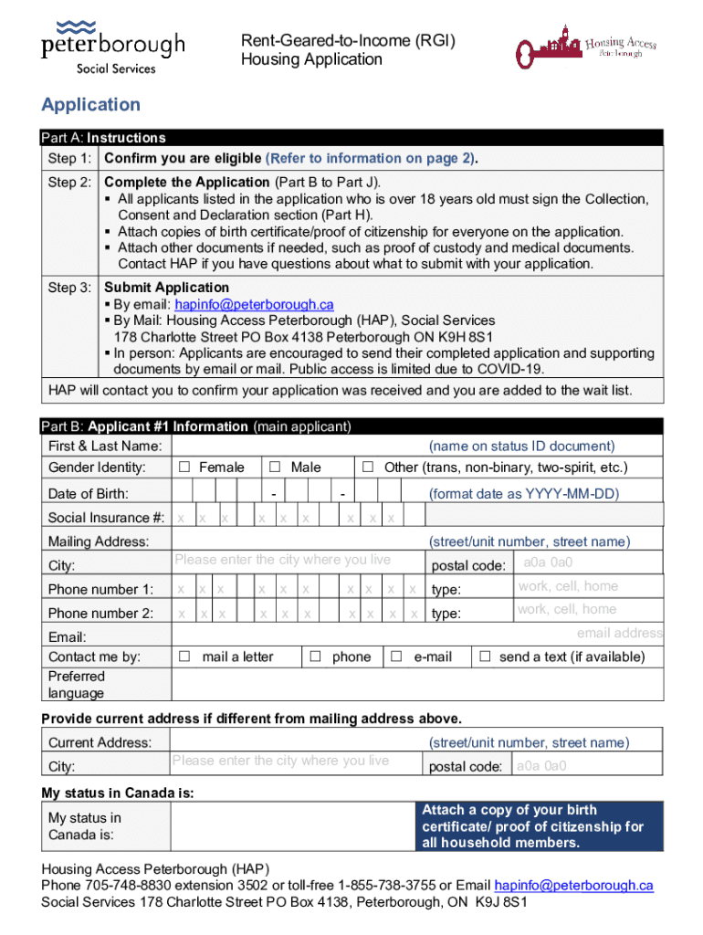 RentGearedtoIncome (CGI) Housing ApplicationRentGearedtoIncome (CGI) Housing Application Frequently Asked Questions Who are Housing Access Peterborough (HAP)? When will I get housing?HAP manages the