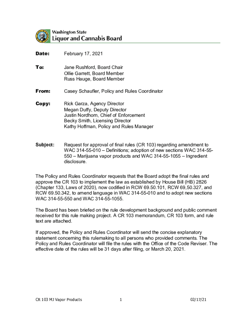 Get the free lcb.wa.govsitesdefaultTo: Jane Rushford, Board Chair Ollie Garrett, Board Member ...
