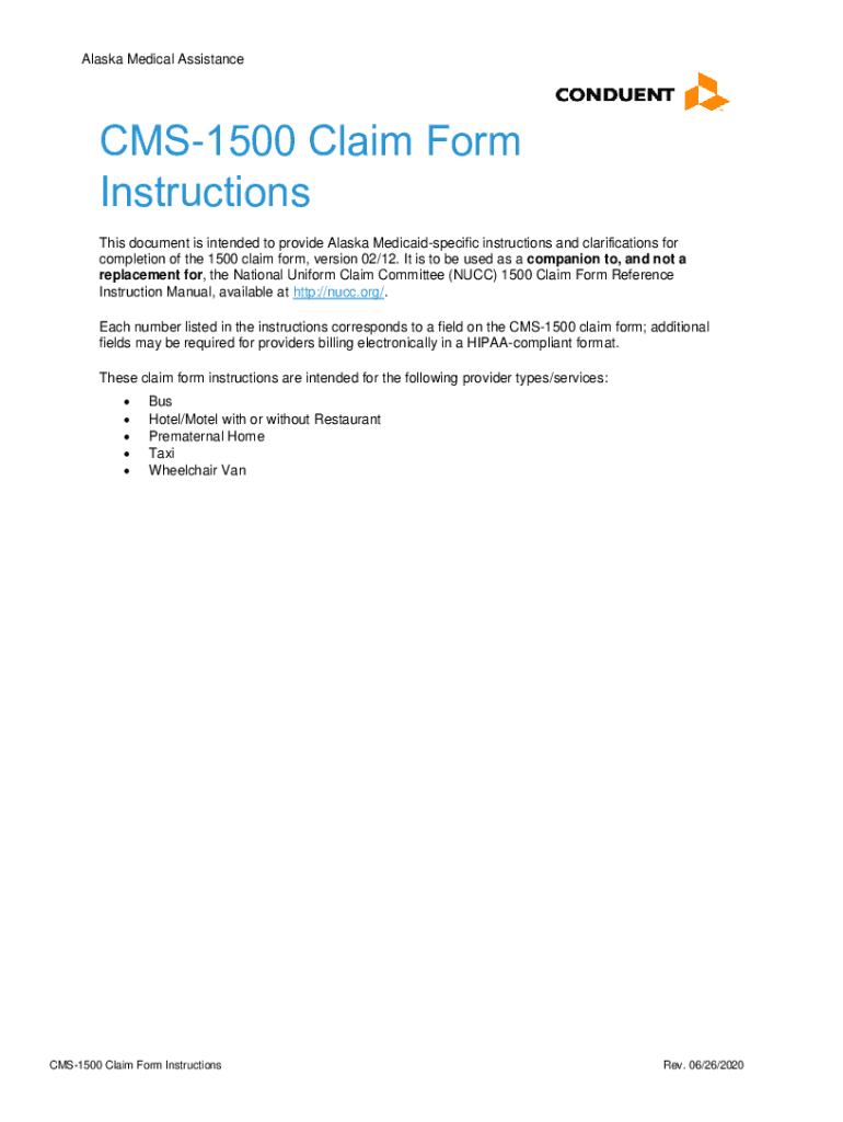 Get the free CMS-1500 Claim Form Instructions - Alaska Medicaid Manual
