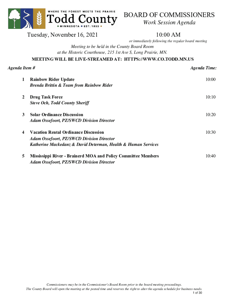 BOARD OF COMMISSIONERS Work Session Agenda Tuesday, November 16, 202110:00 AM or immediately following the regular board meetingMeeting to be held in the County Board Room at the Historic Courthouse,