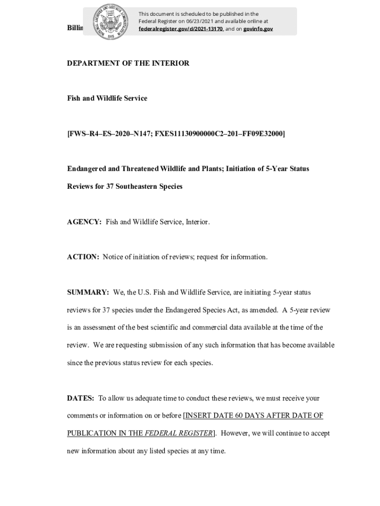 Billing Code 433315This document is scheduled to be published in the Federal Register on 06/23/2022 and available online at federalregister.gov/d/202113170, and on gov info. Department OF THE Interiors