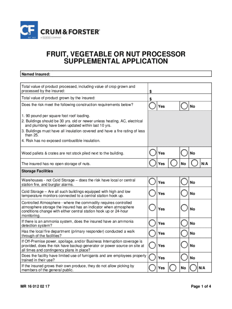 FRUIT, VEGETABLE OR Not PROCESSOR SUPPLEMENTAL APPLICATION Named Insured: Total value of product processed, including value of crop grown and processed by the insured:total value of product grown