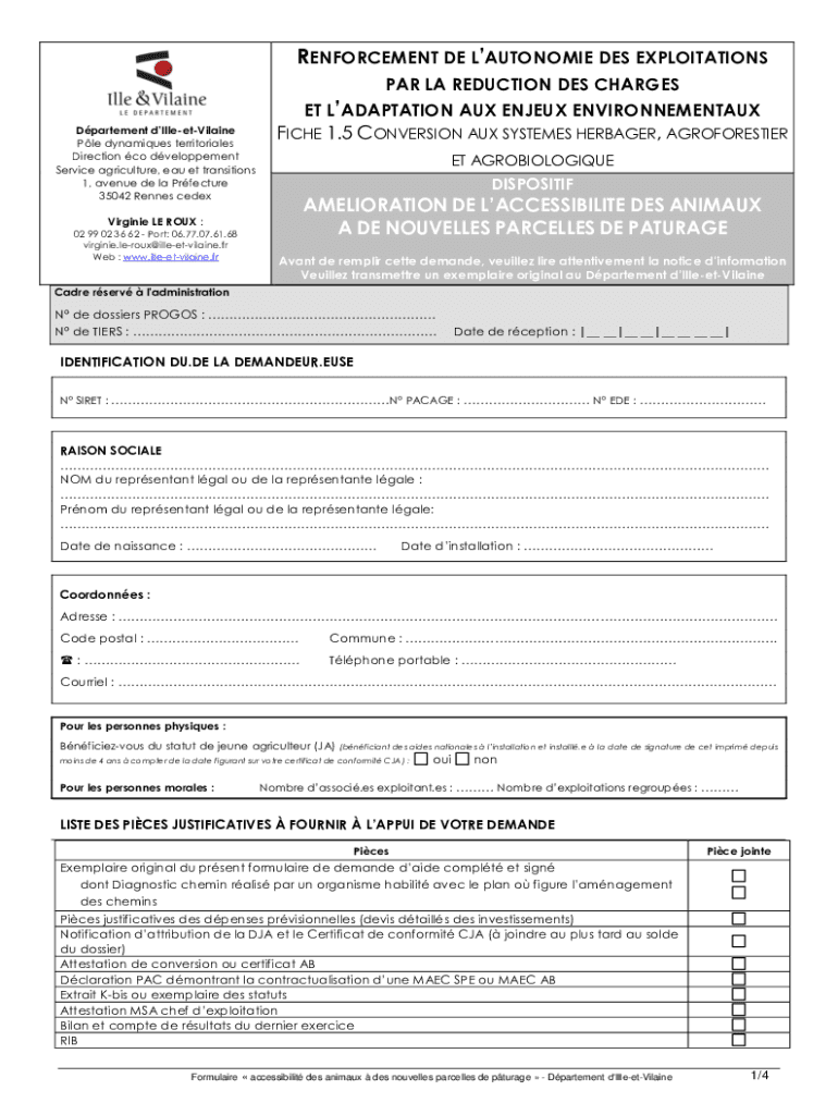ENFORCEMENT DE AUTONOMIC DES EXPLOITATION SPAR LA REDUCTION DES CHARGES ETL ADAPTATION AUX ENDED ENVIRONNEMENTAUX Department Ille-et-Vilaine PLE dynamites territorials Direction co development Service