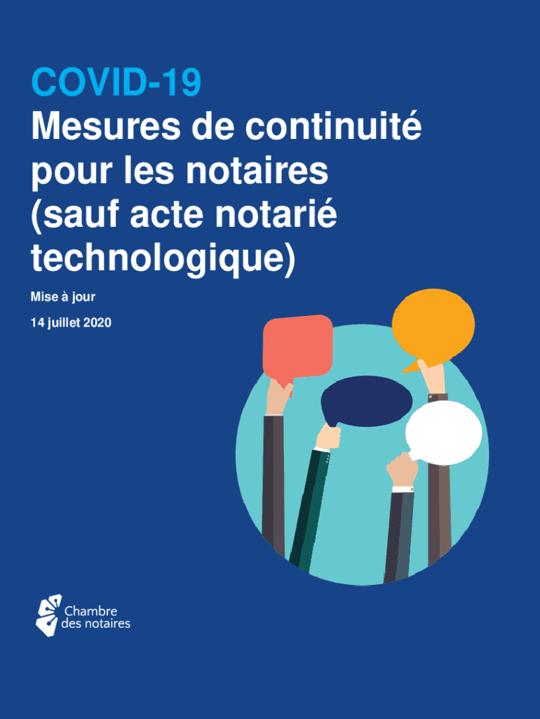COVID-19 Measures DE continuity pour LES notaries (Saul acte notary technologize) Mile four 14 bullet 2020Chambre DES notaries Du Quebec | Measures DE continuity DES services DES notaries (Saul acte
