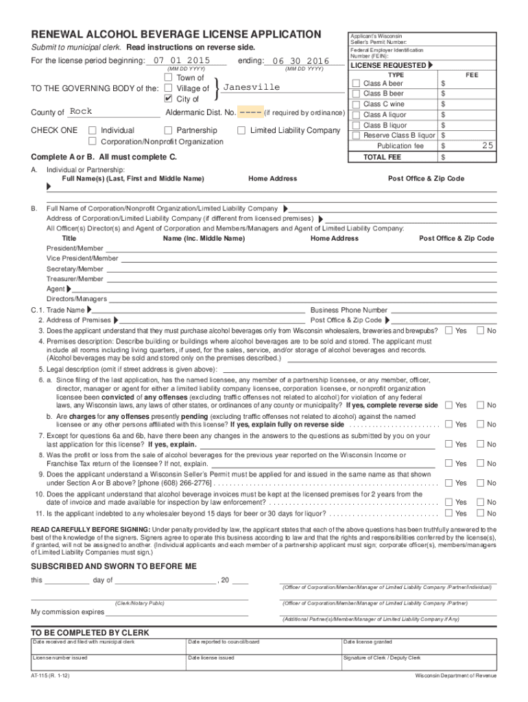 How to fill out at-115 renewal alcohol beverage