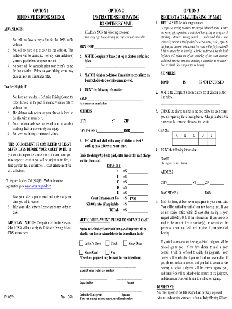 OPTION 1 DEFENSIVE DRIVING SCHOOL ADVANTAGES: 1. 2.3.1. You will not have to pay a fine for that ONE traffic violation. You will not have to go to court for that violation. That violation will be