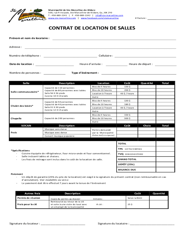 Municipality de SteMarcellinedeKildare 500, rue Principal, SteMarcellinedeKildare, QC, J0K 2Y0 T : 4508832241 | F : 4508832242 | info@stemarcelline.com www.stemarcelline.com | www.facebook.com/stemarcelline#