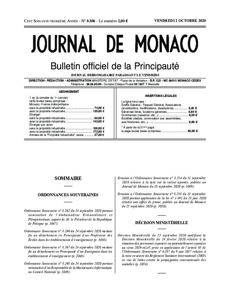 Cent Soixantetroisime Anne N8.506 Le humor 2,00 EMENDED 2OCTOBRE 2020Bulletin official DE la Principal JOURNAL HEBDOMADAIRE PARTISAN LE VENDREDIDIRECTION REACTION ADMINISTRATION MINISTRY DAT Place