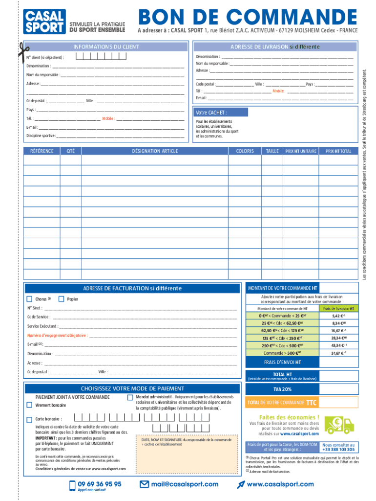 Comment remplir bon de commande casal