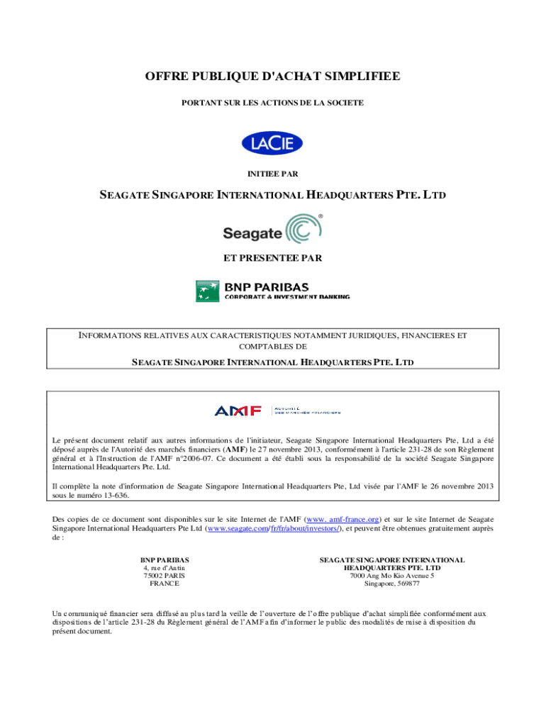 Get the free NOTE D INFORMATION RELATIVEL OFFRE PUBLIQUE D ACHAT ...