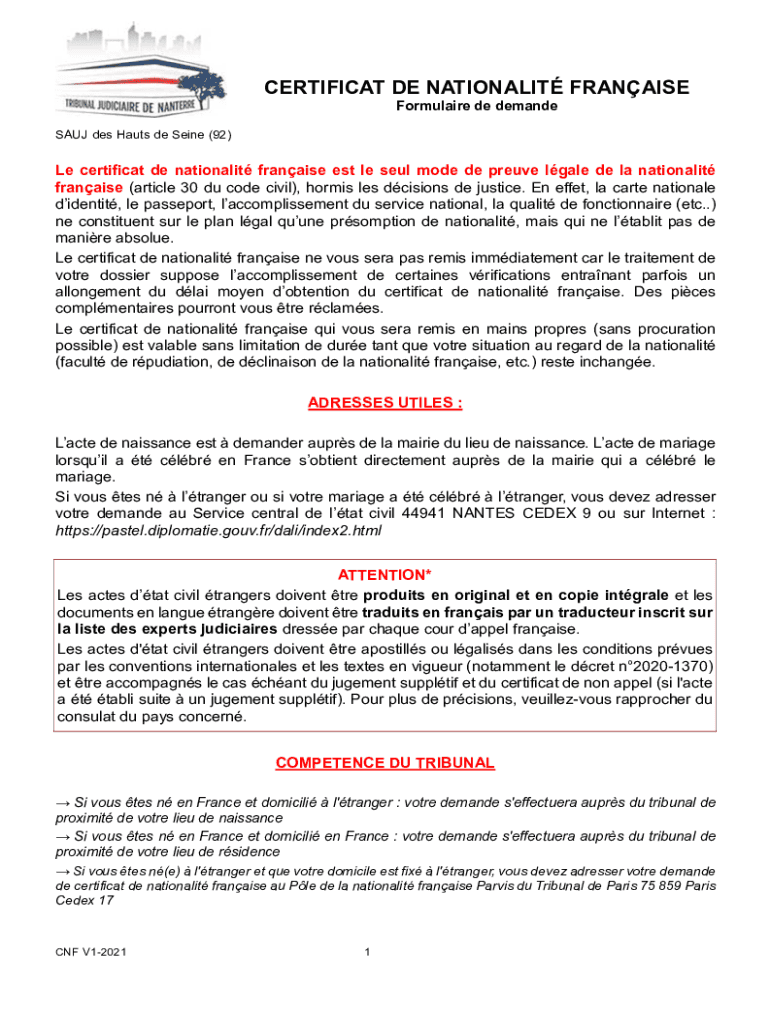 CERTIFICATE DE NATIONALIST FRANCHISE Formula ire DE demand SAUL DES Hauts-de-Seine (92)Le certificate DE nationalist franchise est LE sell mode DE prove gale DE la nationalist franchise (article 30