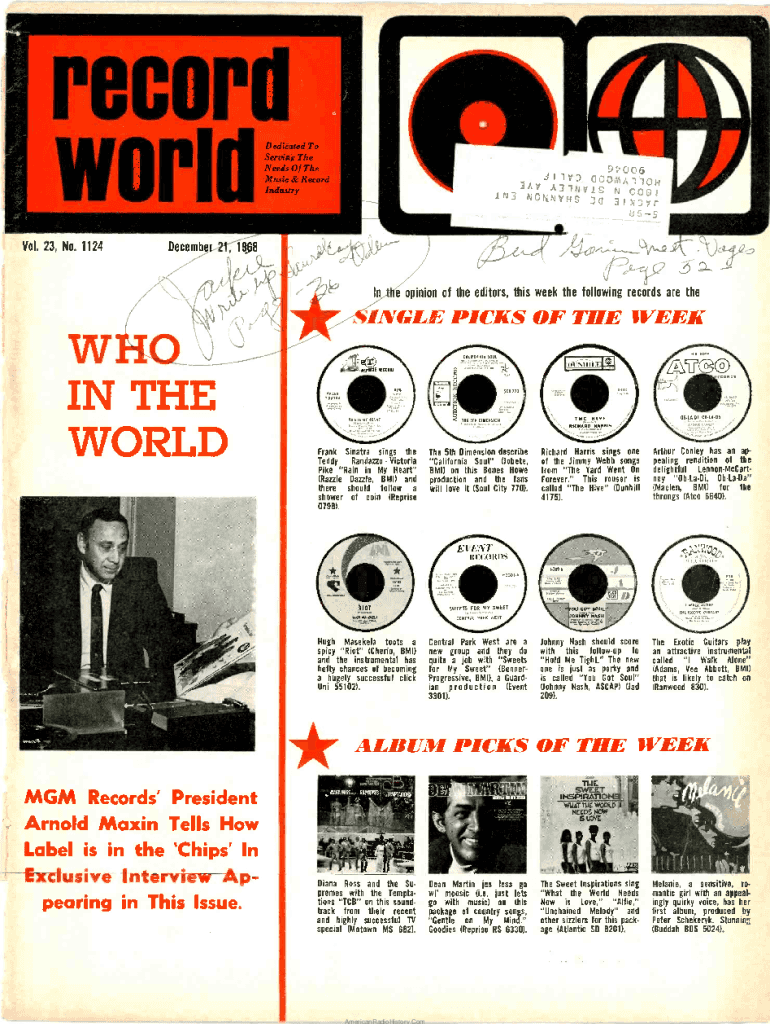Record111111Dedicated To Serving The Needs Of The Music & Record Industry.1I 1V D0001A(A.:11150H.:13AV A3 \IN.LS 1N3CANVASS 3o N COO I3innerr 41 6 5Vol. 23, No. 1124Decembe21, 19688:6 D119e opinion