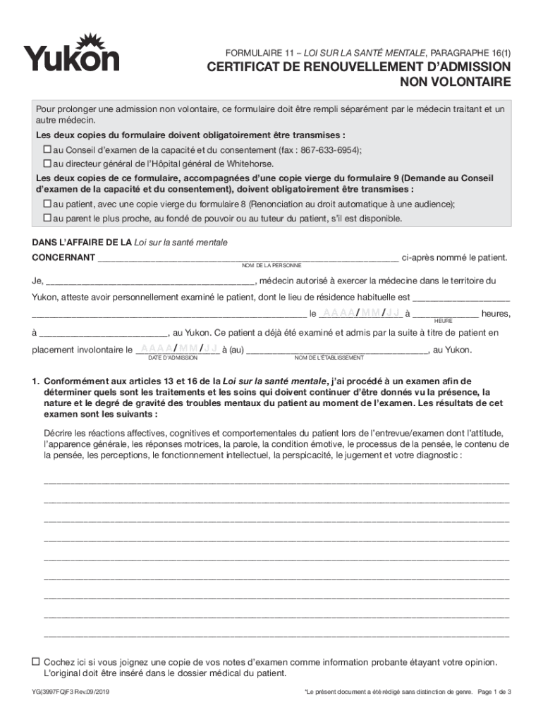FORMULA IRE 11 LOI SUR LA SENT MENTAL, PARAGRAPH 16(1)CERTIFICATE DE RENOUVELLEMENT ADMISSION NON VOLTAIRE Pour prolonged one admission non Voltaire, CE formula ire dot TRE temple apartment par LE
