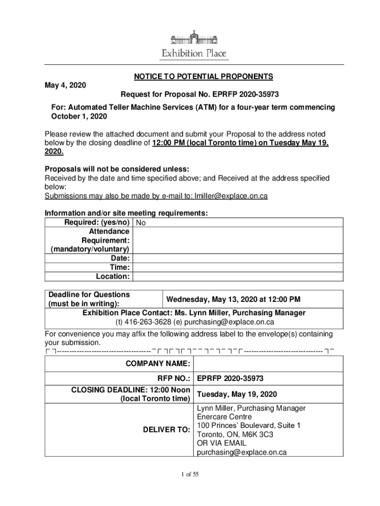 Get the free NOTICE TO POTENTIAL PROPONENTS May 4, 2020 Request for ...