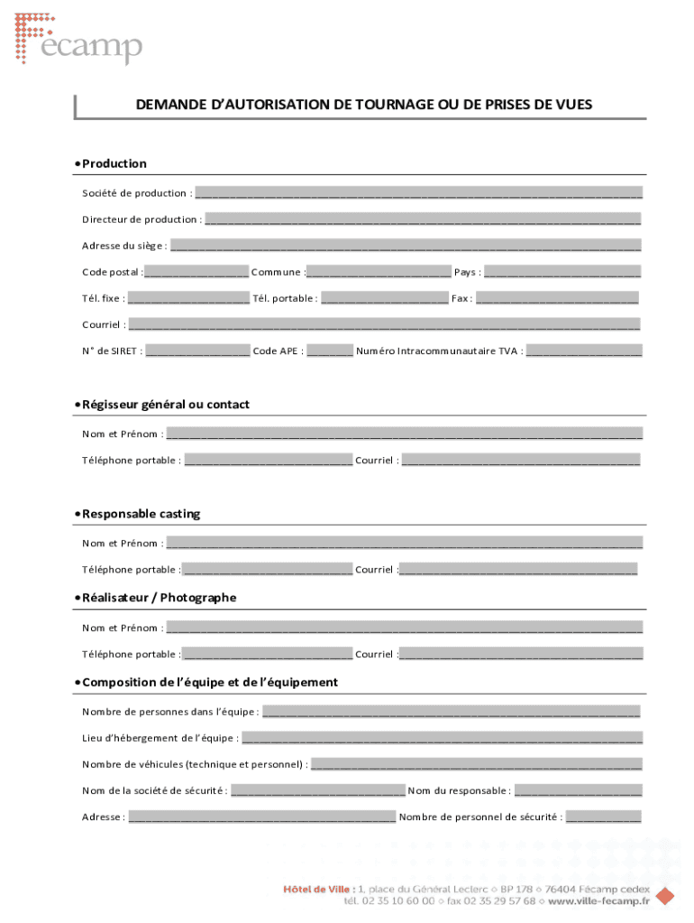 DEMAND AUTHORIZATION DE COURAGE OF DEP RISES DE CUES ProductionSocit de production : ___Directer DE production : ___Address Du side : ___Code postal :___ Commune :___ Pays : ___Tl. Fine : ___ Tl.