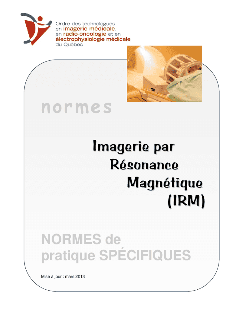 Norms Imageries par Resonance Antique (IRM) NORMS DE critique SPECIFIES Mile four : Mars 2013Le present document put TRE consult SUR LE site Web de l\'Order DES technologies en imageries medical,