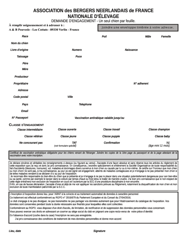 ASSOCIATION disaffiliate BERGER NEERLANDAIS de FRANCE la So cit Central Canine Club pour l\'amelioration DE la race DES chains de Berger de Hollande (Berger's Hollandaise, Schapendoes, ChiensLoup