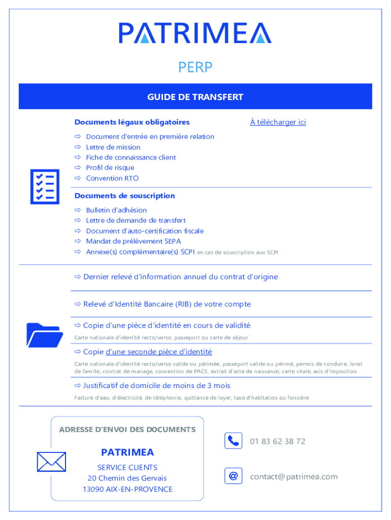 PERP GUIDE DE TRANSFER Documents lg aux obligations' charger document denture en premiere relation Letter DE mission Fiche DE reconnaissance client Profit DE risqué Convention Documents DE subscription