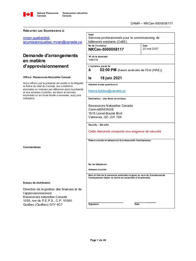 DATA NRCan5000058117 Returner Les Sou missions : Sujetnrcan.quebecbidsoumissionquebec.rncan@canada.caDemande d\'arrangements nature dapprovisionnementOffere :ResourcessNaturallys Canada Nous affronts