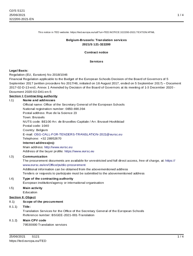 Get the free Services - 322200-2021 - TED Tenders Electronic Daily