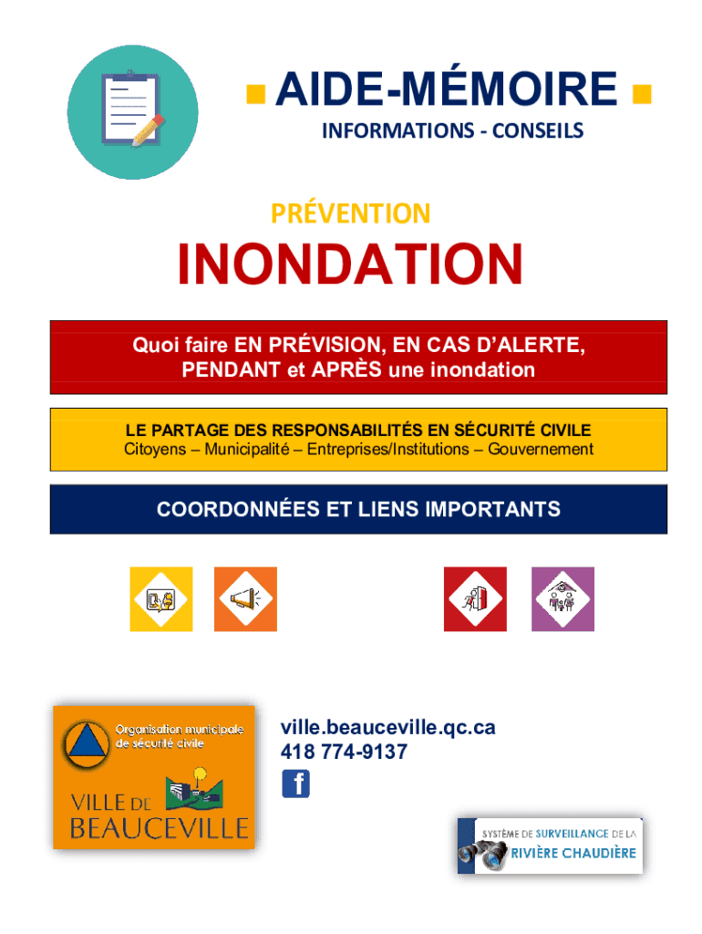 AIDE-MÉMOIRE Information CONSEILSPRVENTIONINONDATION Quo free EN PROVISION, EN CAS DALE RTE, PENDANT et APRS one inundation LE PARTAKE DES RESPONSIBILITY EN SECURITY CIVIL Citizens Municipality Enterprises/Institutions