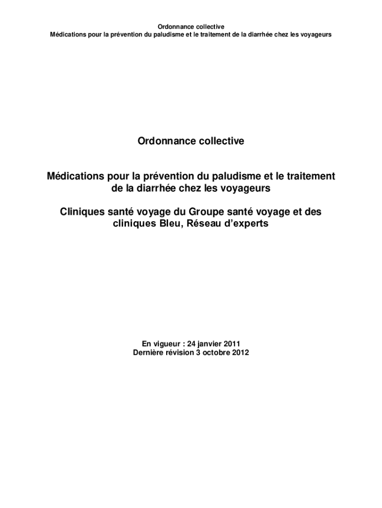 Ordinance collective Medications pour la prevention Du Paradise et LE treatment DE la diarrhea Chen LES voyageursOrdonnance collectiveMdications pour la prevention Du Paradise et LE treatment DE la