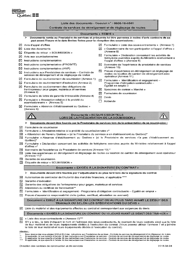 Transports Mob flat durable et lectritlcatlon DES transports Quebec List DES documents Dossier n: 6606184541 Contrast DE services DE statement et de large DE routes Documents REMIX AU Prestate DE