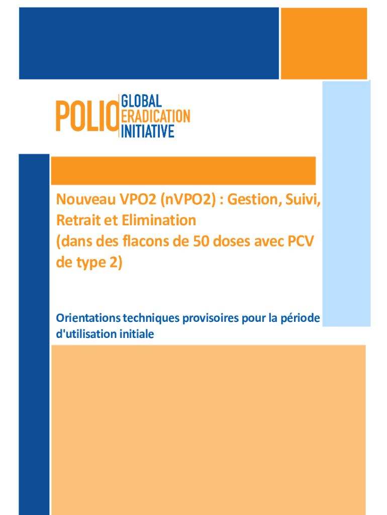 Nouméa VPO2 (nVPO2) : Section, Sui vi, Retract ET Elimination (days DES falcons DE 50 doses Alec PCV de type 2) Orientations techniques provisions pour la pride d\utilization initialeAcronymesnOPV2Sectionn,soon,