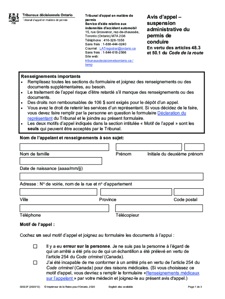 Obtenir le gratuit www.forms.ssb.gov.on.cambsssbTribunal dappel en matire de Avis dappelpermis su...