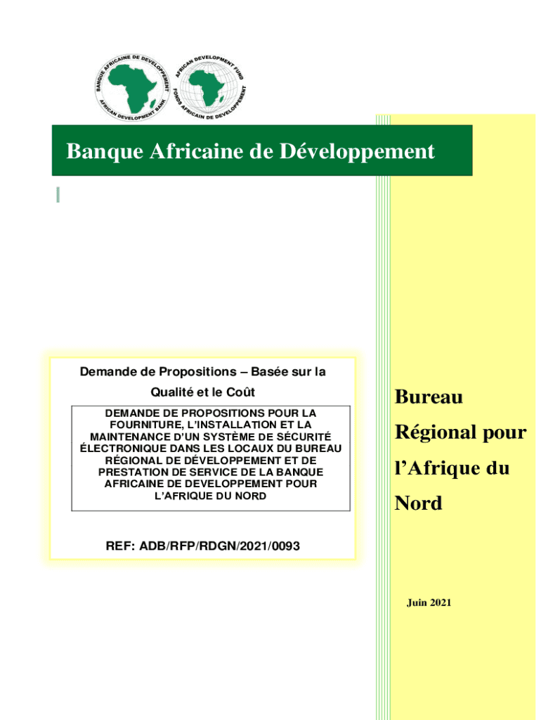 Banquet African de DveloppementDemande de Propositions Base SUR la Quality et LE Cot DEMAND DE PROPOSITIONS POUR LA FURNITURE, INSTALLATION ET LA MAINTENANCE DUN SYSTEM DE SECURITY VERONIQUE DAYS