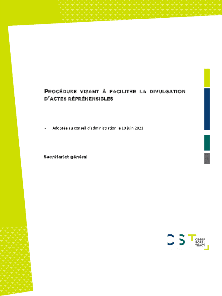 PROCEDURE VISA NT FACILITIES LA DIVULGATION D\ACTS RPRHENSIBLESAdopteAUuConrailladministrationnLEe 10joinn 2021Secrtariat gnralProcdurevisittfacilitiesr la divulgationdatess rprhensibles2NOTE :Dan'SS