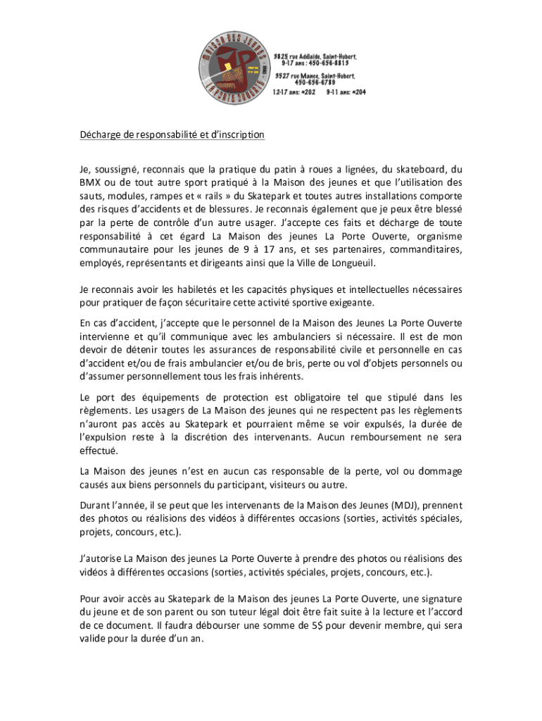 Charge DE responsibility ET inscription, sous sign, reconnaisquelapratiquedupatinrouesalignes, skateboard, duBMXoudetoutautresportpratiqulaMaisondesjeunesetquelutilisationdessauts, modules, ramp set