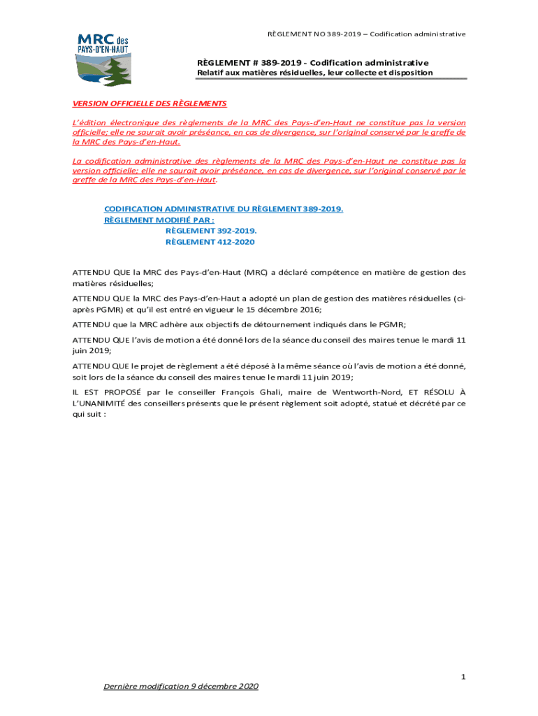 ELEMENT NO 3892019 Codification administrativeRGLEMENT # 3892019 Codification administrative Related aux matures rsiduelles, Lear collected et dispositionVERSION OFFICIALLY DES ELEMENTS Edition Veronique