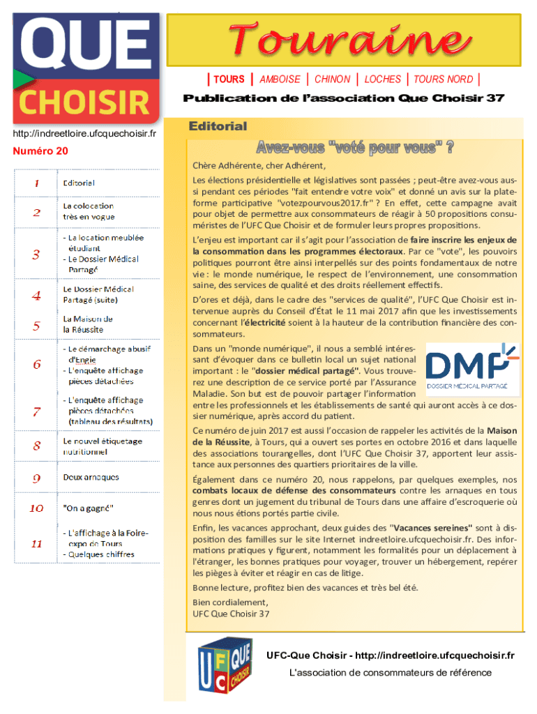 Obtenir le gratuit N 20 Juin 017 - UFC-Que Choisir de l'Indre et Loire