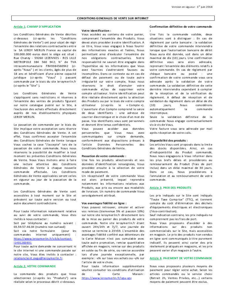Version en liqueur : 1er join 2018CONDITIONS GENERALS DE VENUE SUR INTERNET Article 1. CHAMP APPLICATION Les Conditions Grades de Vente DC rites hideous (cars LES \'ConditionsGradess de Vente\'Content