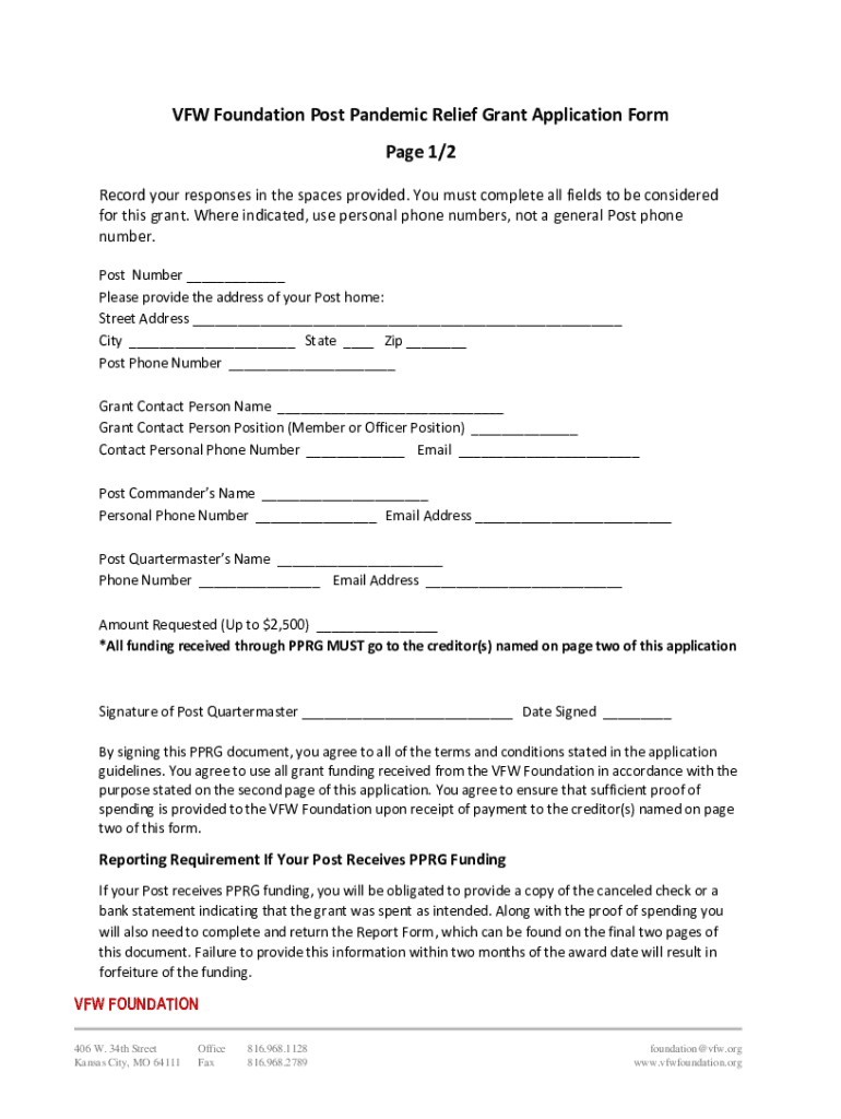 VFW Foundation Post Pandemic Relief Grant Guidelines The COVID-19 Pandemic has negatively impacted several VFW Posts. To help ease the financial burden created by this unprecedented crisis, the VFW