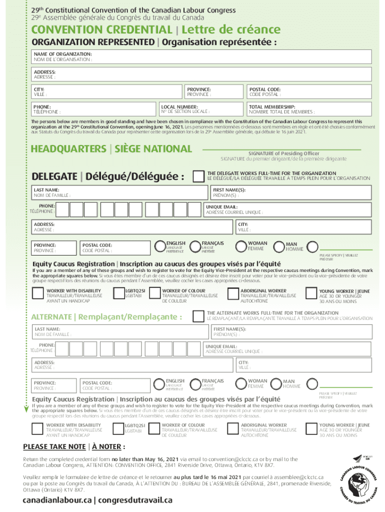 29th Constitutional Convention of the Canadian Labor Congress 29e Assemble GRALE Du Congas Du travail Du CanadaCONVENTION CREDENTIAL | Letter de France ORGANIZATION REPRESENTED | Organization represented