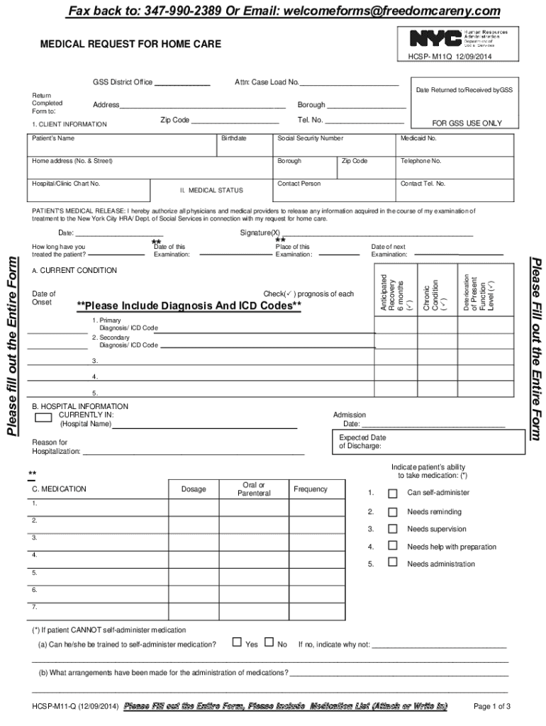 Get the free www1.nyc.govassetshraMEDICAL REQUEST FOR HOME CARE HCSP- M11Q 12/09/2014 GSS ...