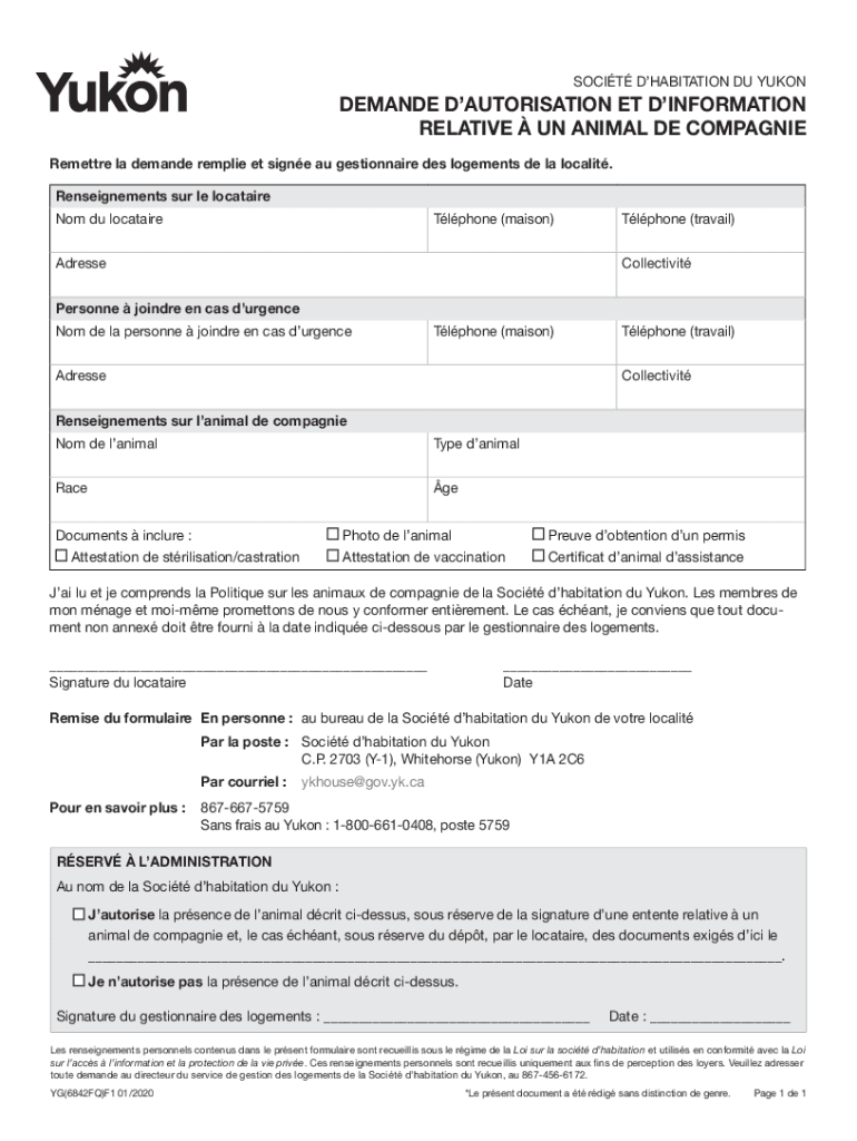 SO CIT HABITATION DU YUKONDEMANDE AUTHORIZATION ETD INFORMATION RELATIVE UN ANIMAL DE COMPANIES Resettle la demand temple ET signed AU questionnaire DES movements DE la locality. Restatements SUR