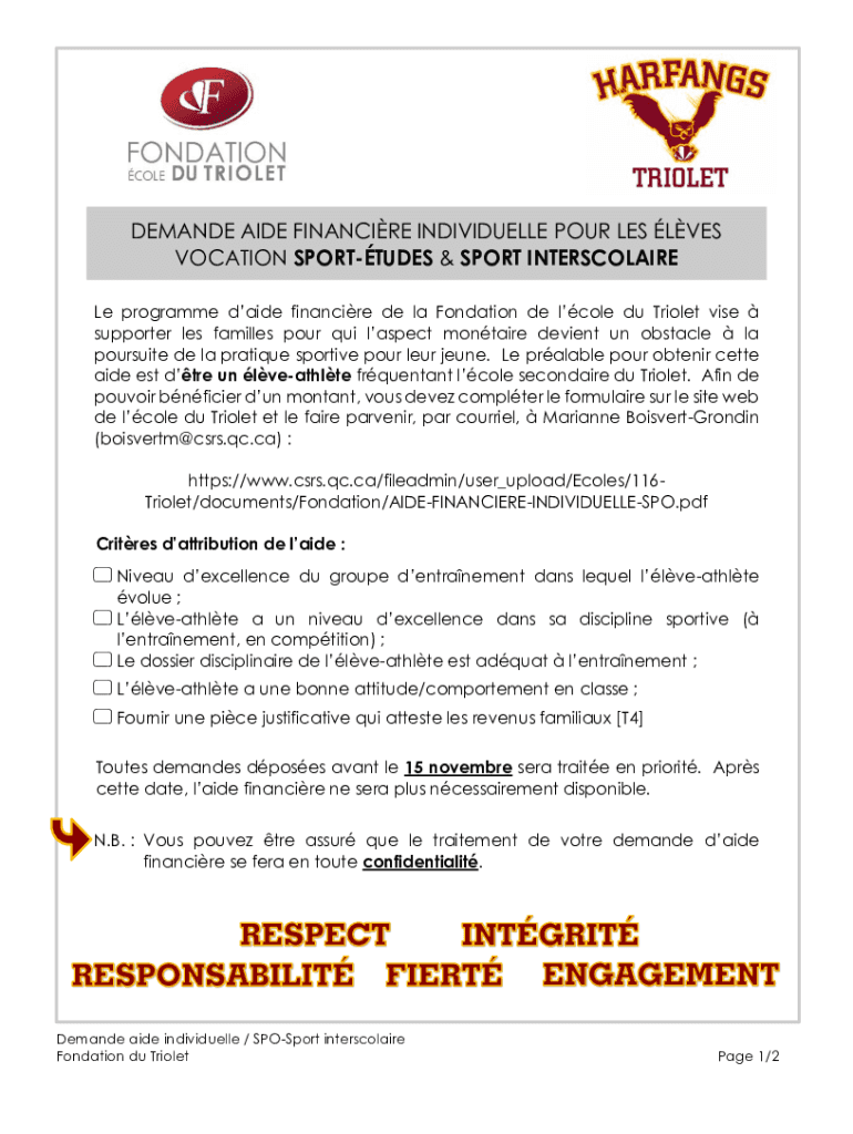 DEMAND AIDE FINANCIAL INDIVIDUALLY POUR LES LIES VOCATION POSTLUDES & SPORT INTERSCOLAIRE Le program financier DE la Foundation de Cole Du Triplet vise supporter LES families pour quit aspect Monterey