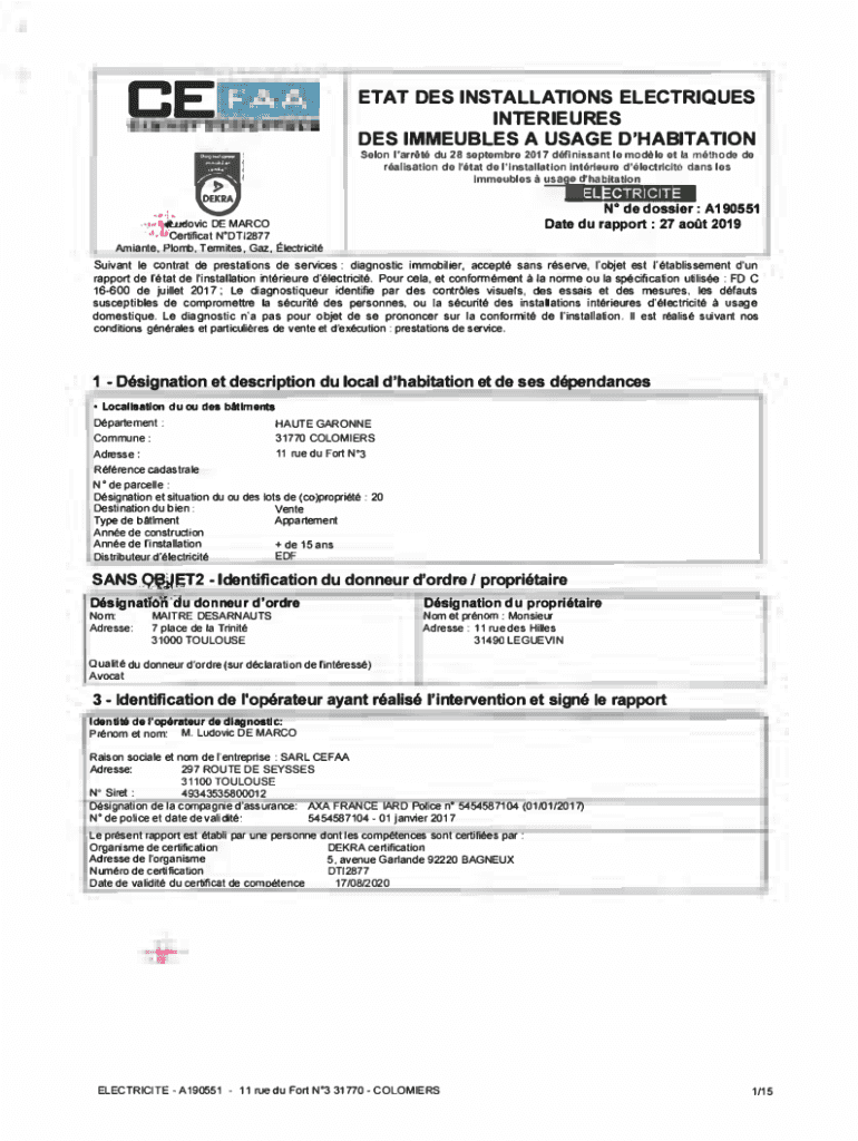 Get the free ETAT DES INSTALLATIONS ELECTRIQUES INTERIEURES DES ...