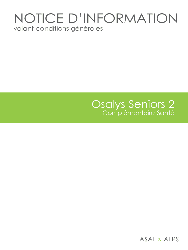 NOTICED INFORMATION vacant conditions gnralesOsalys Seniors 2Complmentaire SantASAF&AFPSSommaire Preamble p.3 League p.3 Tableau DES prestations.4Article 1 Object Du contract.6Article 2 Modality adhesion