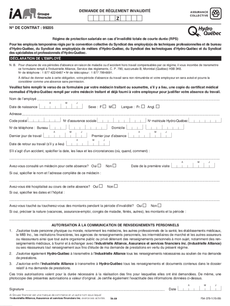Get the free PDF Demande de rglement d'invalidit de longue dure