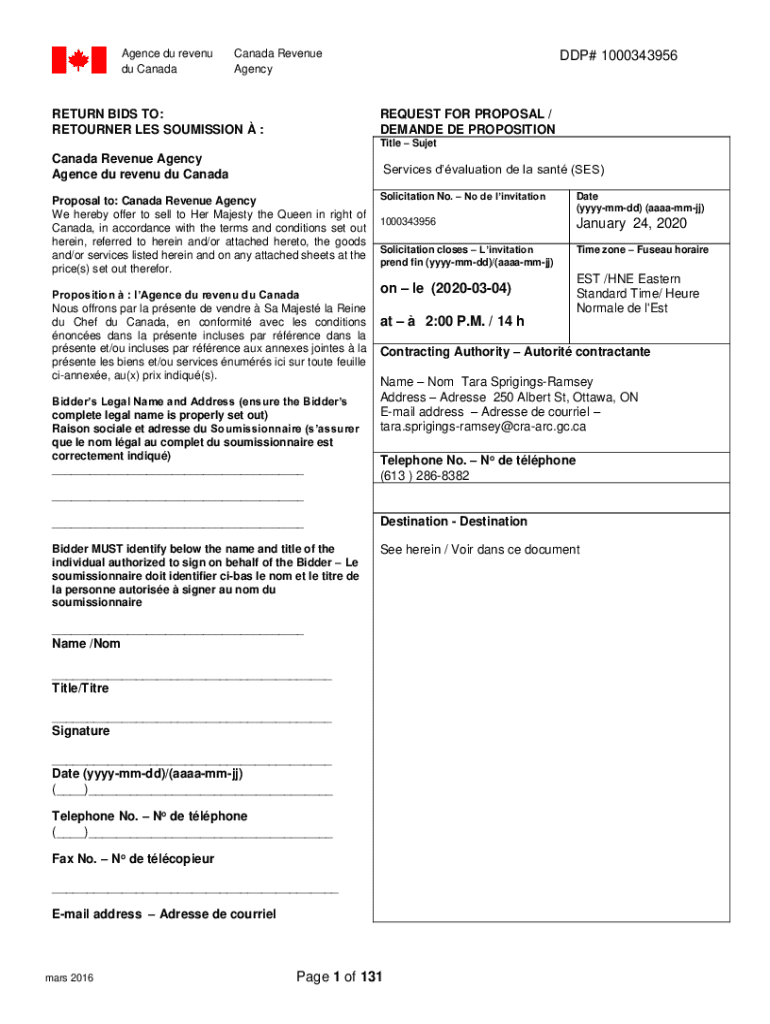 Agency Du revenue Du Canada Revenue AgencyRETURN BIDS TO: RETURNER LES COMMISSION :GDP# 1000343956REQUEST FOR PROPOSAL /DEMAND DE PROPOSITION Title SujetCanada Revenue AgencyAgencyeDuurevenueuDuu