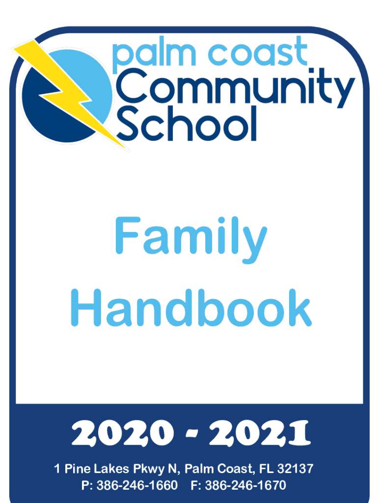 Family Handbook2020 2021 1 Pine Lakes Pkwy N, Palm Coast, FL 32137 P: 3862461660 F: 38624616702020 2021 Palm Coast Community School Family HandbookSTUDENT NAME: ___1 What do we do? Our purpose is
