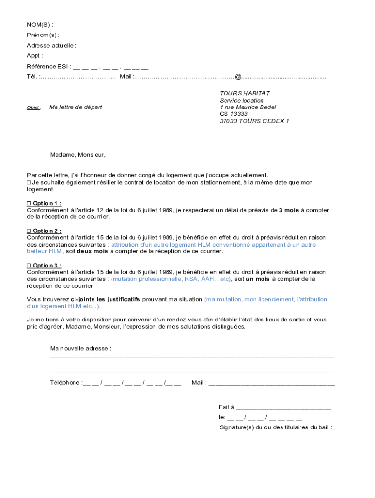 Comment remplir lettre-conge-departpdf - tours habitat?