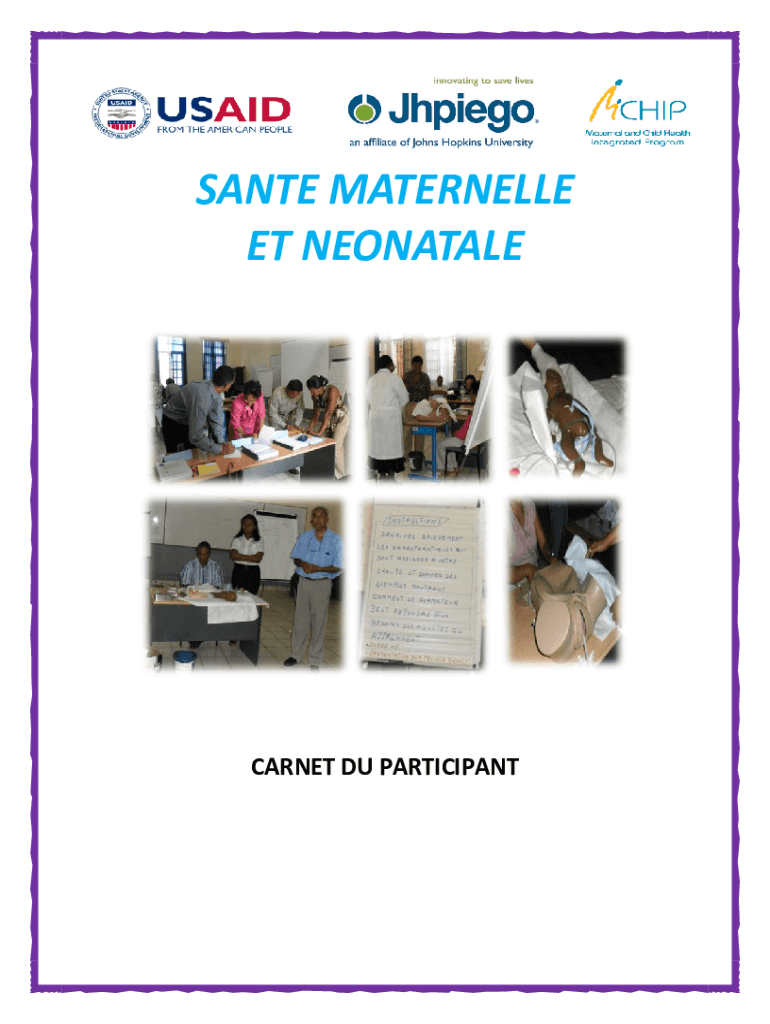 SANTA MATERNALLY ET NEONATALECARNET DU PARTICIPANT Ce document a t product par la gnosis Du people American, par LE bias de l\'United States Agency for International Development (USAID). Content est