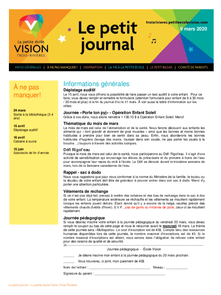 9 Mars 2020 né pas manqué! 24 Mars Sortie la bibliophile (34 ans) 15 April Dpi stage audit if 16 April Cabana Sucre 15 join Spectacle DE fin danneInformations grades Dpi stage audit if Le 15 April,
