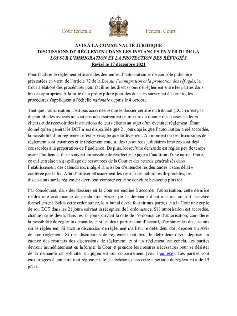 AVIS LA COMMUNIST CRITIQUE DISCUSSIONS DE ELEMENT DAYS LES INSTANCES EN VERT DE LA LOI SUR IMMIGRATION ET LA PROTECTION DES RUGS Avis LE 17 December 2021 Pour facilities LE element efficacy DES demands